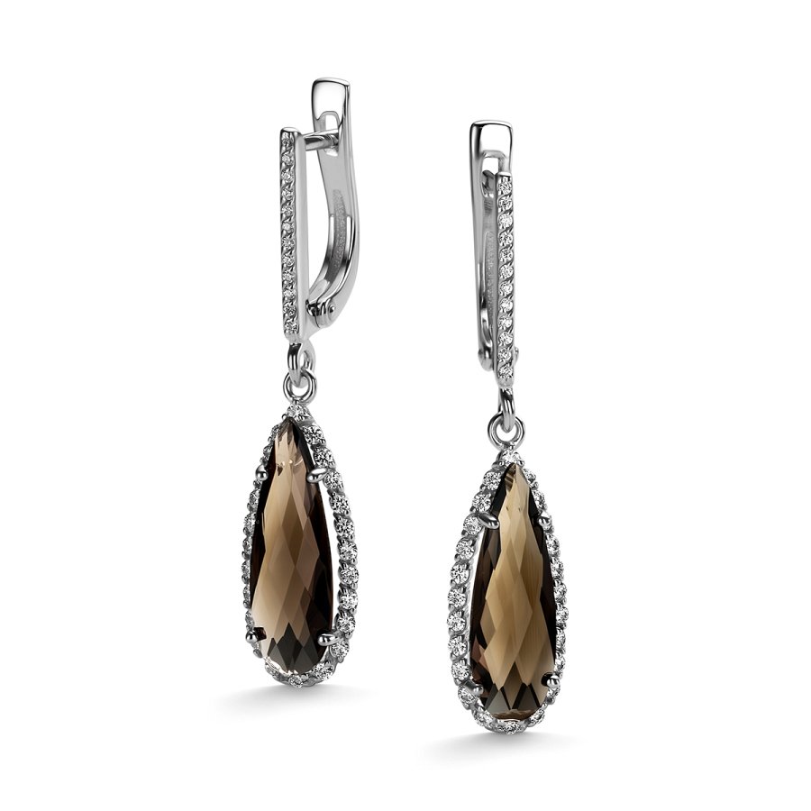 Серебряные Серьги Раухтопаз Фианит (арт. С-3219рб40700)
