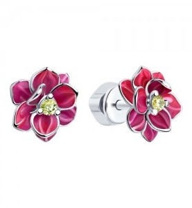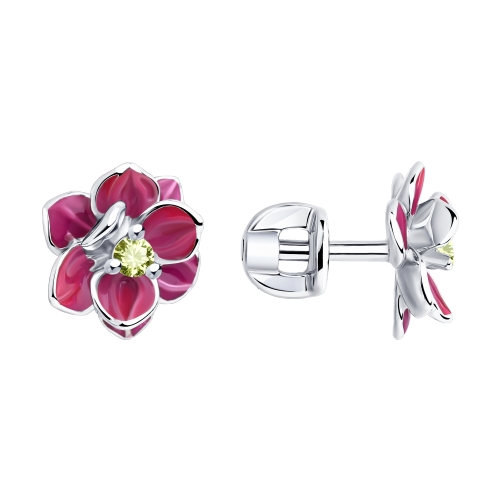 Серебряные Серьги Фианит Эмаль (арт. 94023338)