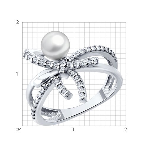 Серебряное Кольцо Жемчуг синтетический Фианит (арт. 94014927)